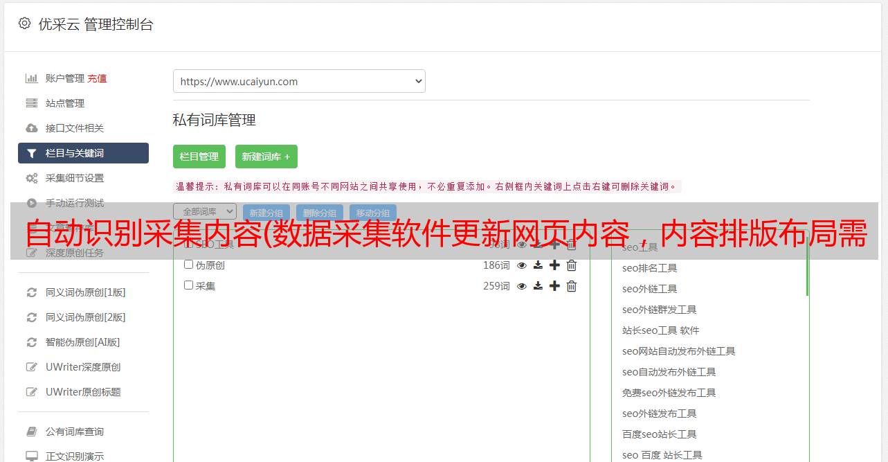 其实大家都知道优质内容对于网站优化的重要性,但是坚持更新原创内容是一件费时费力的事情。为了解决这个问题,采集软件会将采集过来的数据文章简单的处理成一段伪原创内容,而文章可读性流畅,用户体验也能得到提升,对搜索引擎也会更加友好。