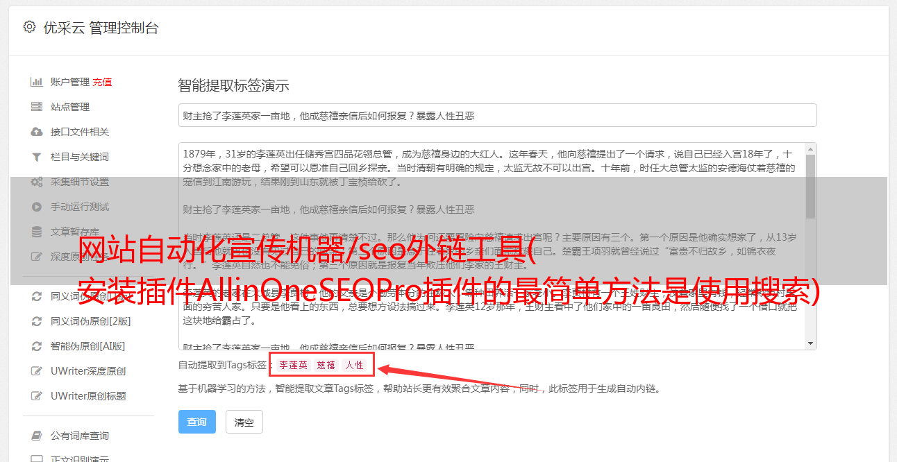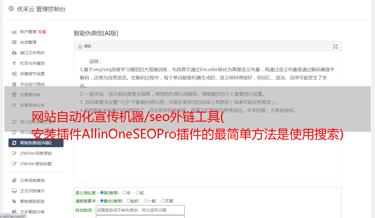 网站自动化宣传机器/seo外链工具( 安装插件AllinOneSEOPro插件的最简单方法是使用搜索)