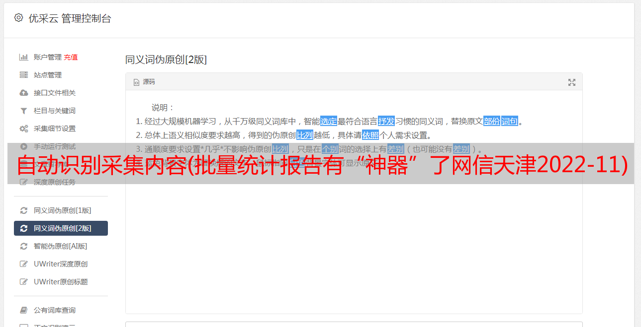 自动识别采集内容(批量统计报告有“神器”了网信天津2022-11)