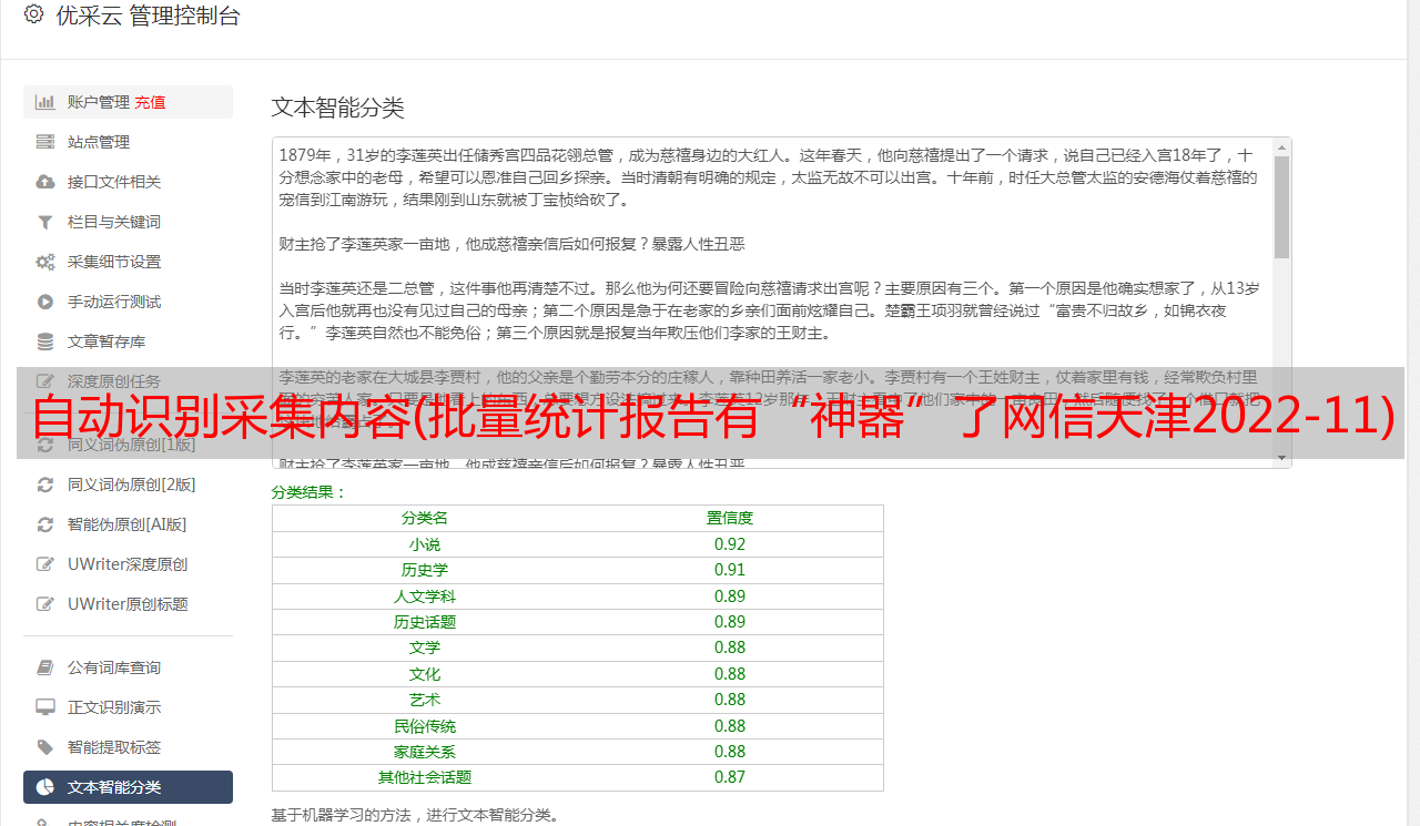 优采云 发布时间: 2022-04-12 19:30自动识别采集内容(批量统计报告有“神器”了网信天津2022-11)