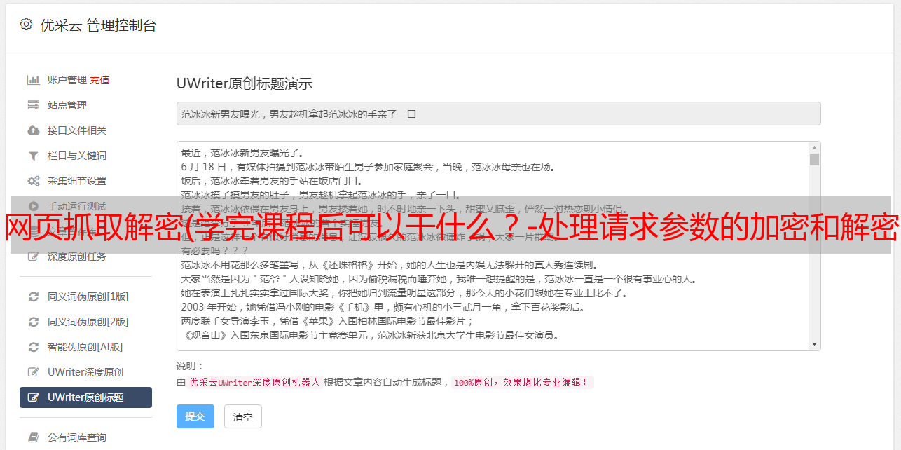 优采云 发布时间: 2022-04-12 20:34网页抓取解密(学完课程后可以干什么?-处理请求参数的加密和解密