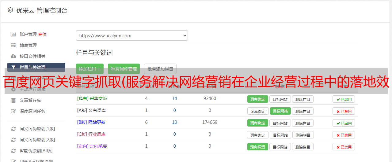 优采云 发布时间: 2022-04-12 23:30百度网页关键字抓取(服务解决网络营销在企业经营过程中的落地效果
