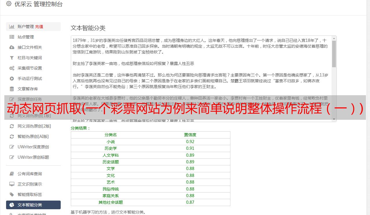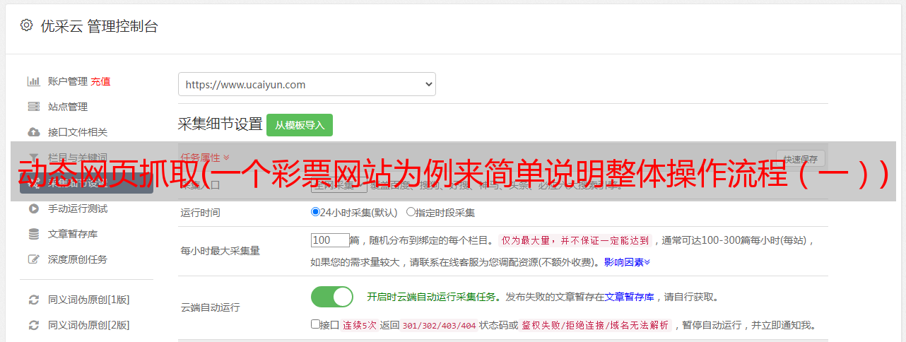 优采云 发布时间: 2022-04-13 10:35动态网页抓取(一个彩票网站为例来简单说明整体操作流程(一))