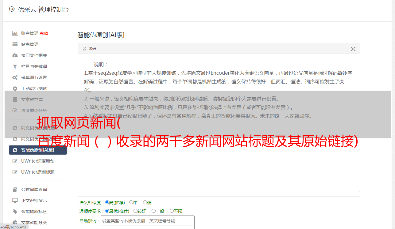 百度新闻()收录的两千多新闻网站标题及其原始链接)