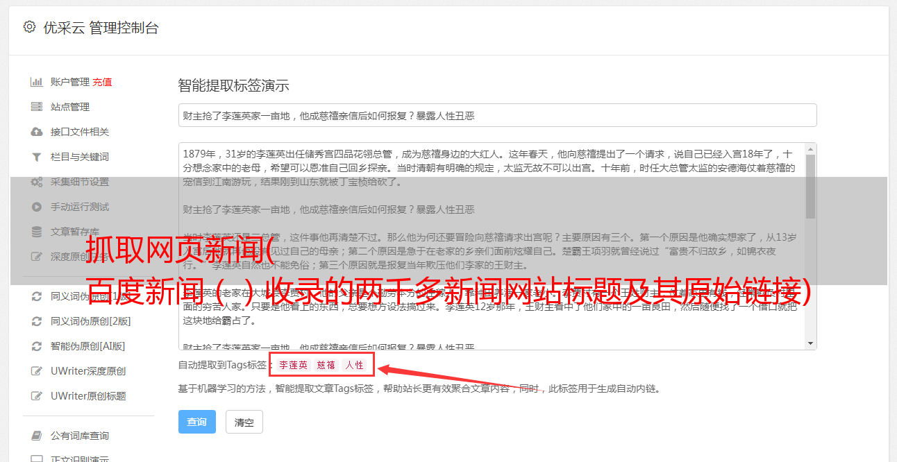要爬取新闻,首先要有一个新闻源,也就是爬取的目标网站。国内新闻网站,从中央到地方,从综合到垂直行业,新闻上千条网站。百度新闻()收录约2000多。那么让我们从百度新闻开始吧。