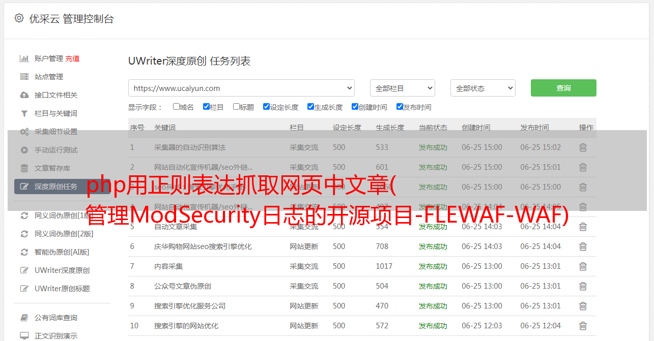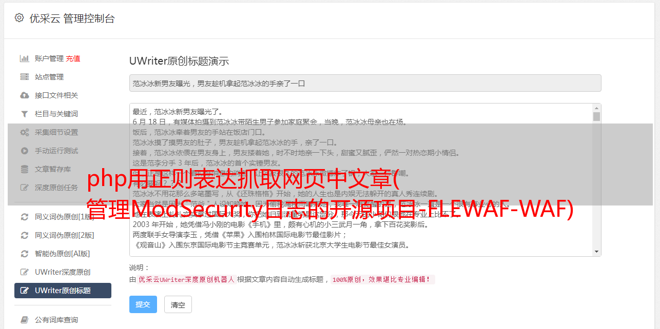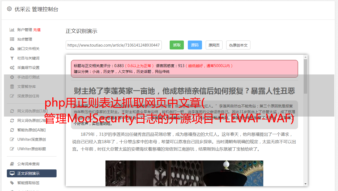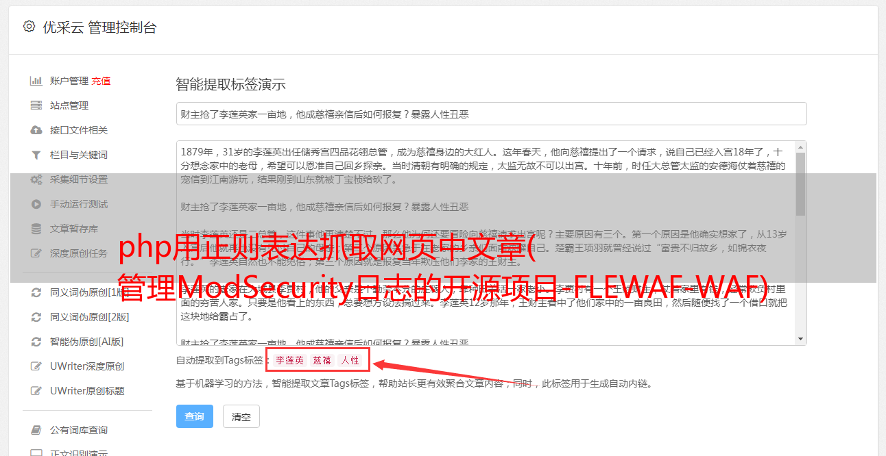 php用正则表达抓取网页中文章( 管理ModSecurity日志的开源项目-FLEWAF-WAF)