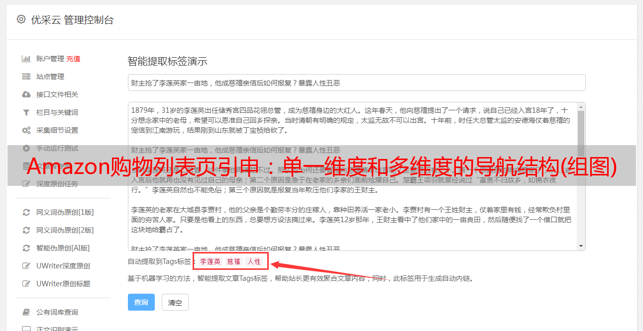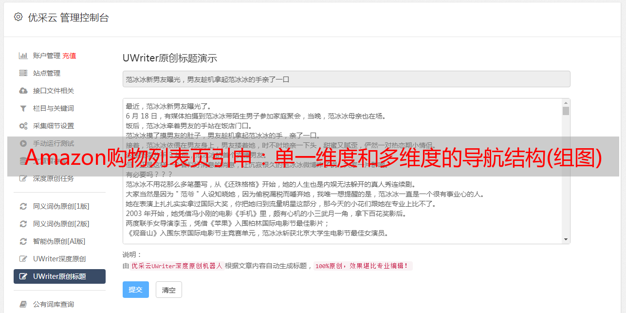 优采云 发布时间: 2021-05-16 21:23Amazon购物列表页引申:单一维度和多维度的导航结构(组图)