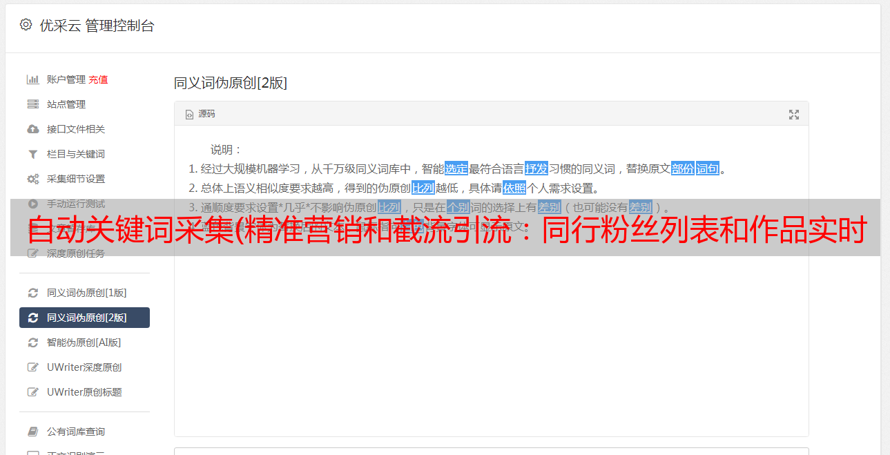 优采云 发布时间: 2022-04-15 01:32自动关键词采集(精准营销和截流引流:同行粉丝列表和作品实时监控)