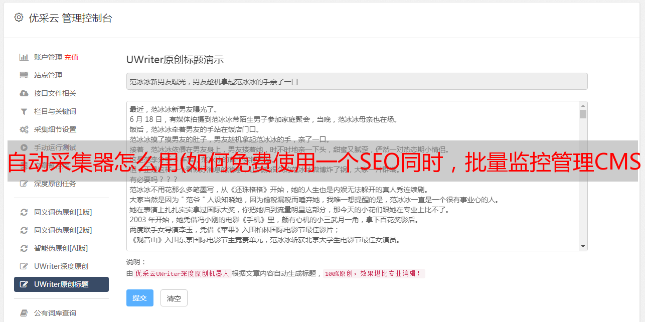 自动采集器怎么用(如何免费使用一个SEO同时,批量监控管理CMS网站 )