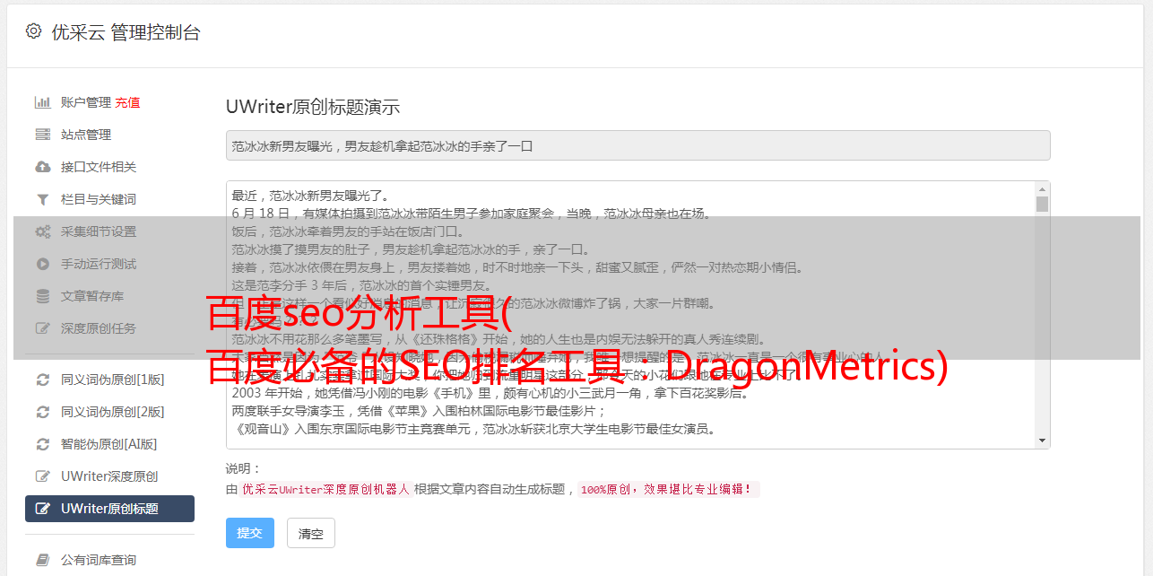 优采云 发布时间: 2022-04-15 08:22百度seo分析工具(