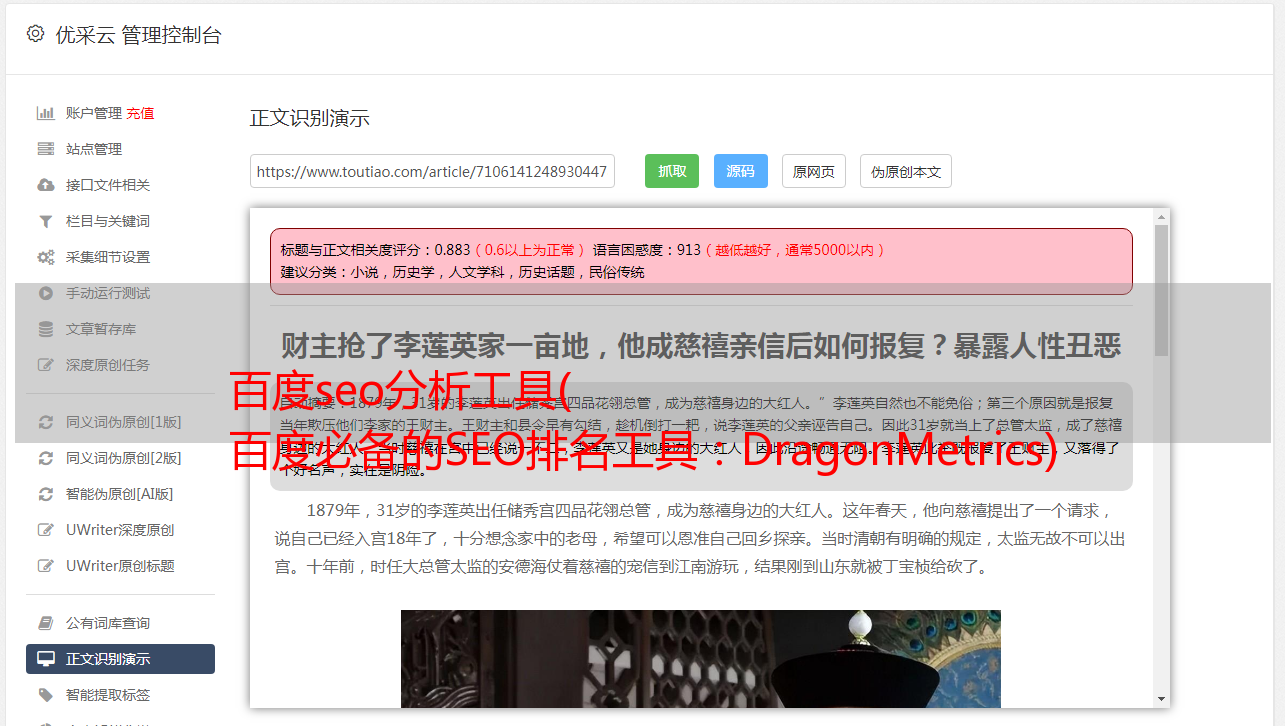 百度必备的SEO排名工具:DragonMetrics)