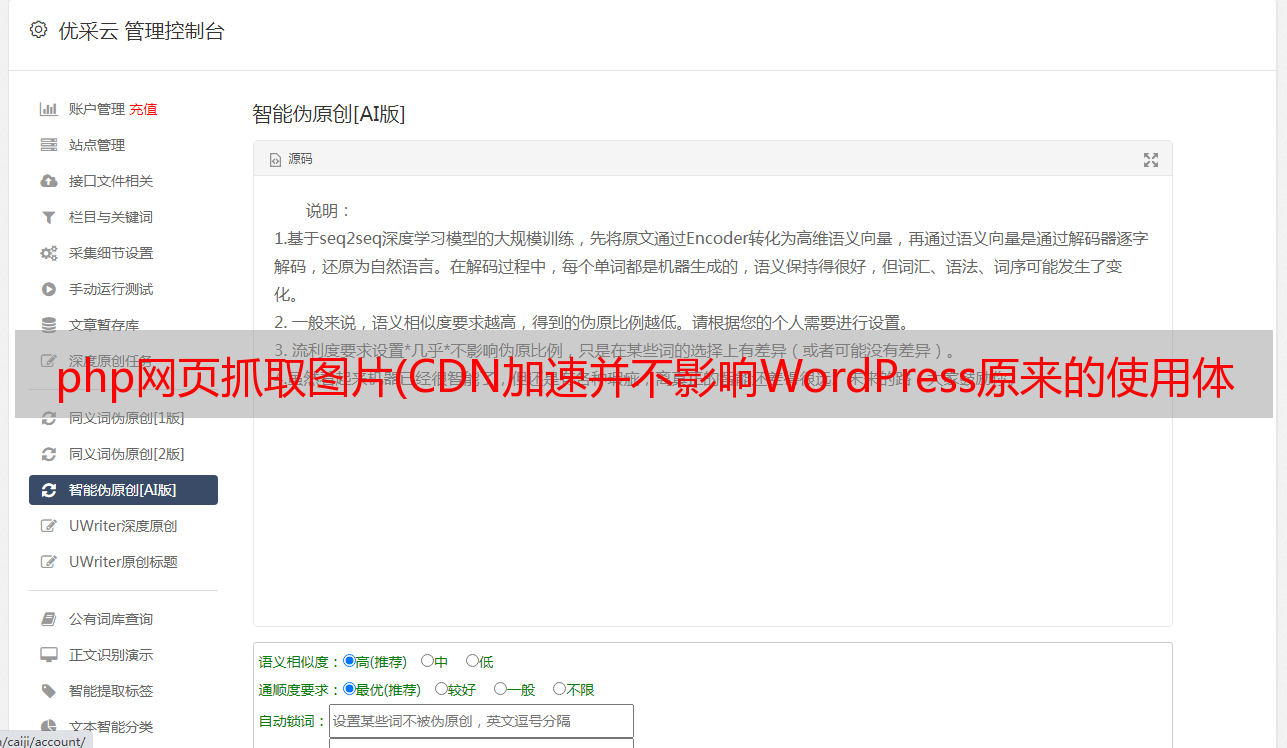 优采云 发布时间: 2022-04-15 09:16php网页抓取图片(CDN加速并不影响WordPress原来的使用体验和操作指南)