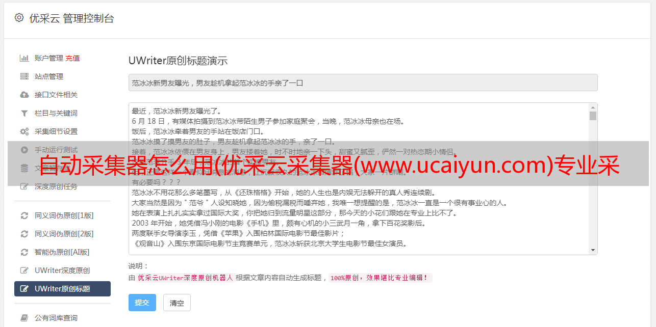 1.打开软件输入关键词即可实现全自动采集,多站点采集发布,自动过滤采集文章,与行业无关文章,保证内容100%相关性,全自动批量挂机采集,无缝对接各大cms出版商,后采集 自动发布推送到搜索引擎!