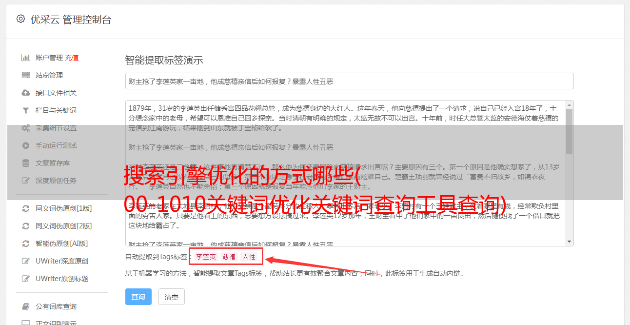 我们可以进入[收录home],[小红帽SEO]进行排名,收录,吸引蜘蛛,一键生成文章等等,效果相当不错,还能省不少时间。