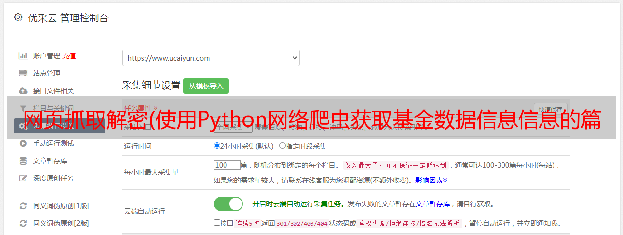 优采云 发布时间: 2022-04-15 22:16网页抓取解密(使用Python网络爬虫获取基金数据信息信息的篇文章分享)