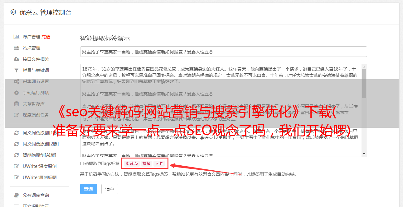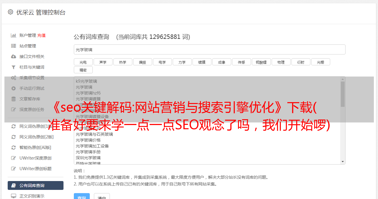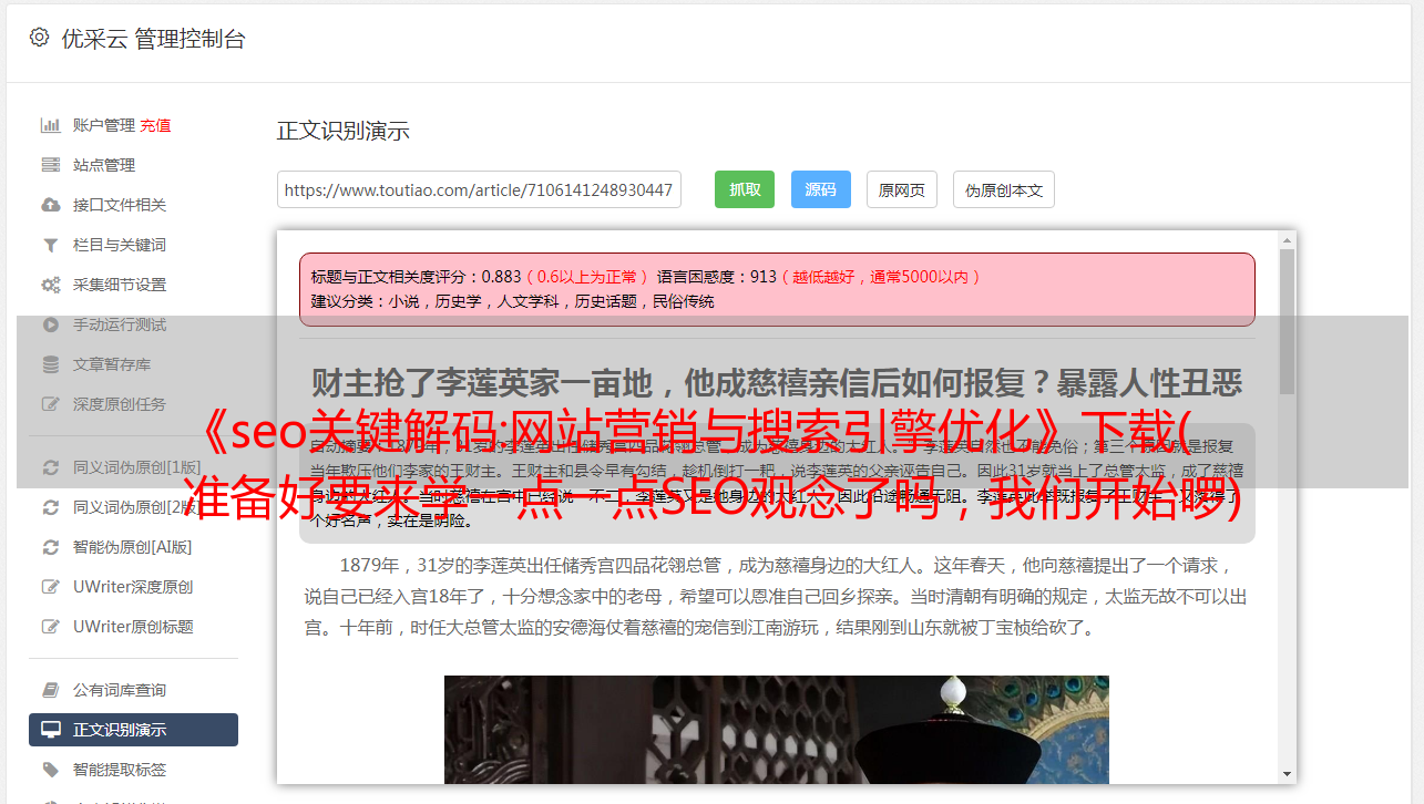 优采云 发布时间: 2022-04-16 03:17《seo关键解码:网站营销与搜索引擎优化》下载(