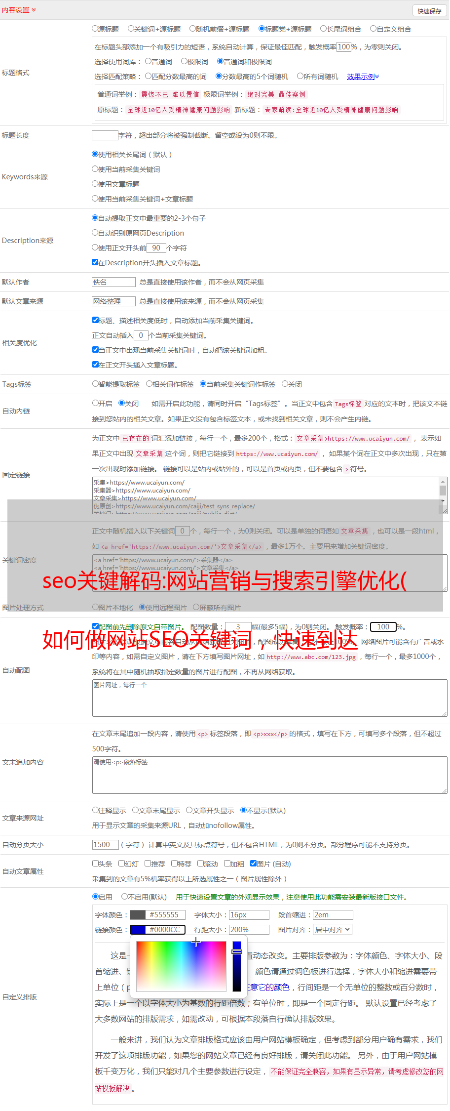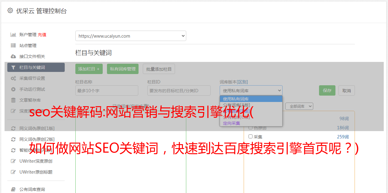 3.文章Title(带长尾词) 通常,当我们想快速进入浏览器首页时,在做文章Title的时候,我们通常采用如下策略: 关键词+长尾词,首先考虑长尾词和点击,提高客户个人行为指标值,促进网页快速净重。4.提升网站权重通道如果想让百度搜索引擎优化一个关键词在首页的排名,那它必须是一个关键页面,所以需要放在一个比较高的网站部分,例如 网站 导航、类别页面顶部、高内容页面,最好是一些内部结构锚链接。
