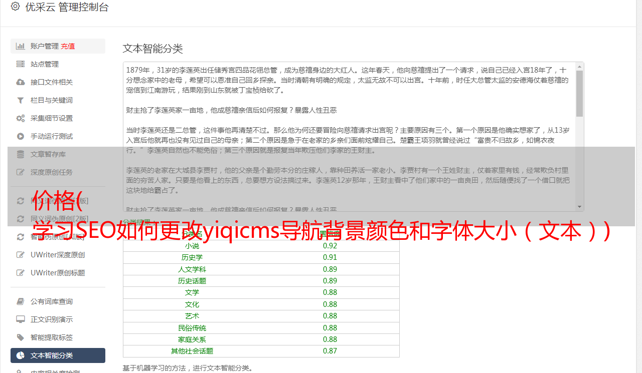 价格( 学习SEO如何更改yiqicms导航背景颜色和字体大小(文本))