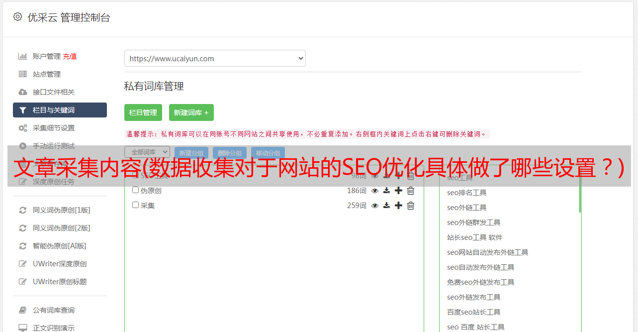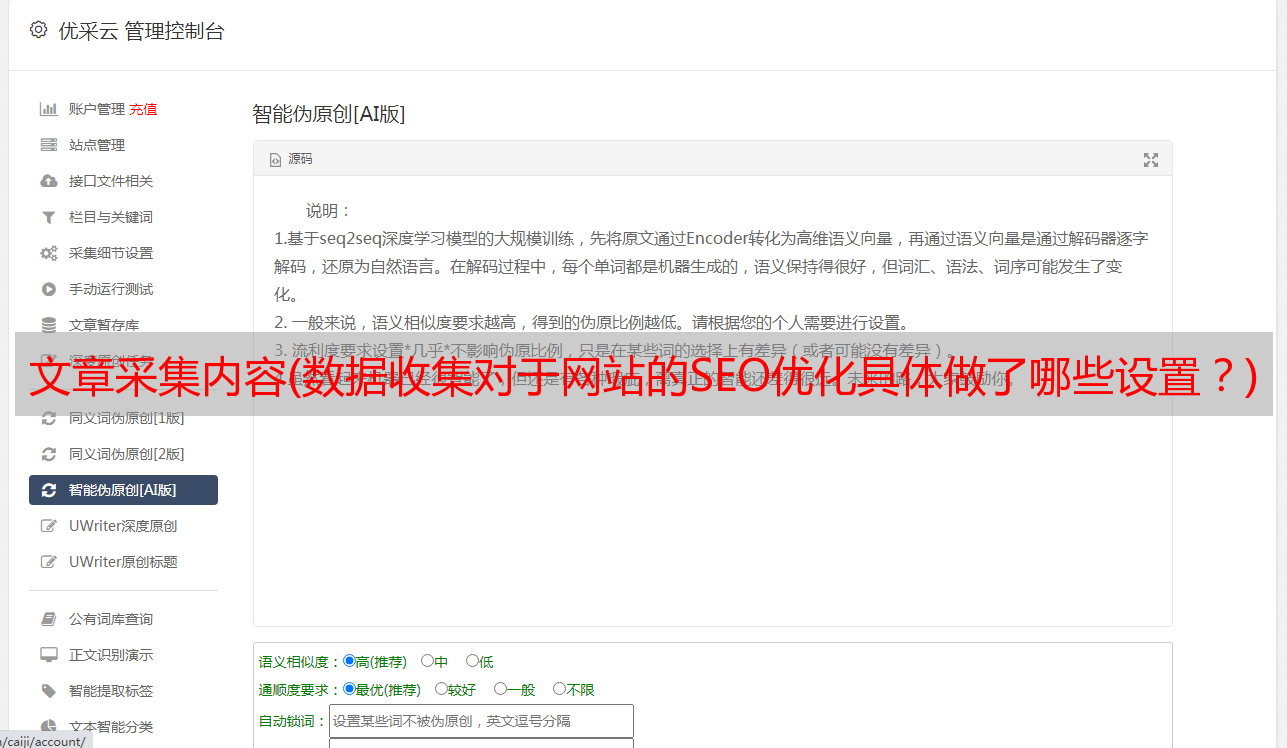 优采云 发布时间: 2022-04-17 12:18文章采集内容(数据收集对于网站的SEO优化具体做了哪些设置?)