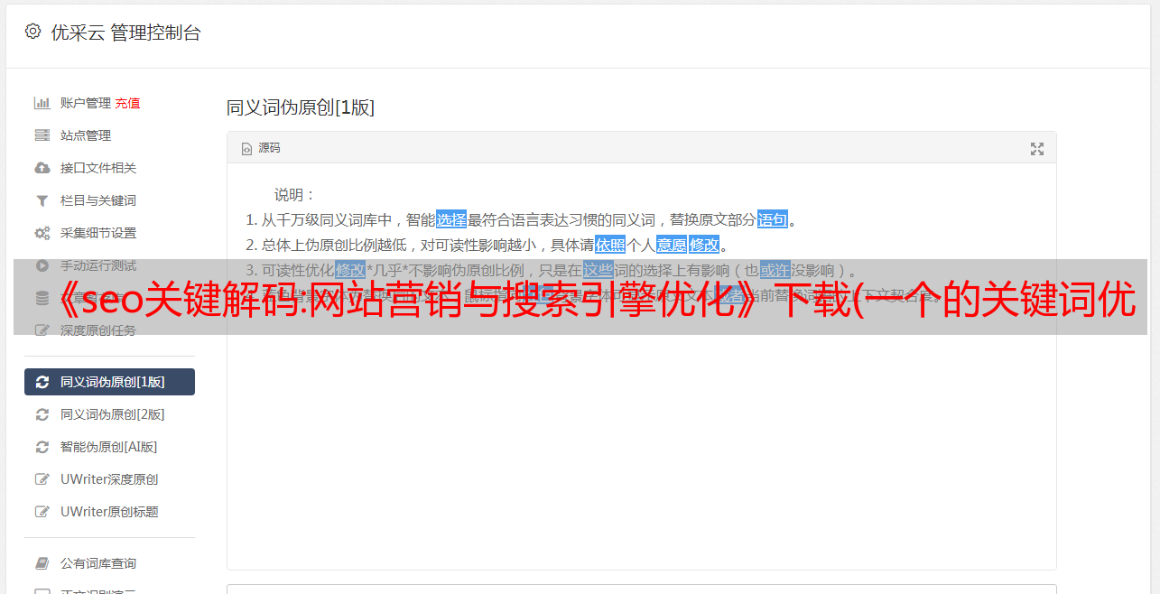 优采云 发布时间: 2022-04-17 21:26《seo关键解码:网站营销与搜索引擎优化》下载(一个的关键词优化策略是怎么做出来的?方法/步骤)