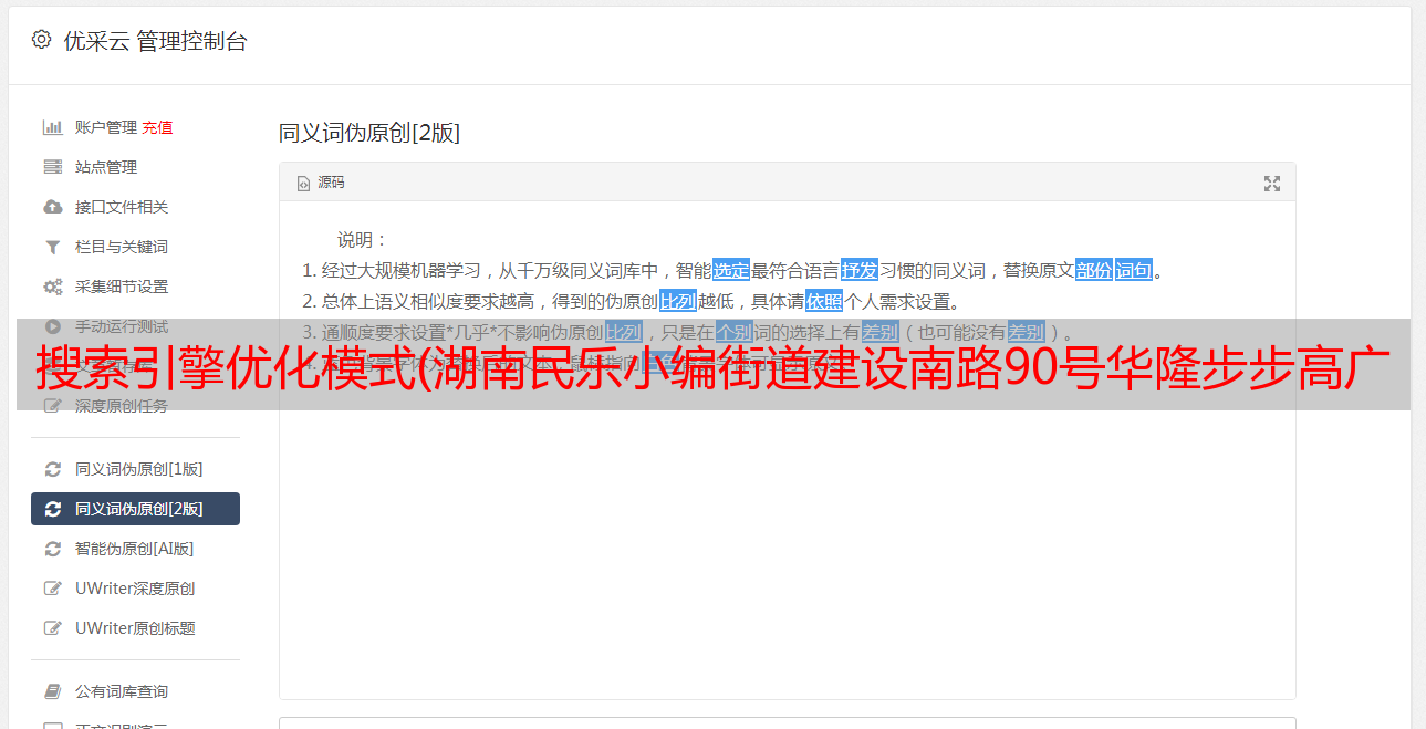 优采云 发布时间: 2022-04-18 08:18搜索引擎优化模式(湖南民乐小编街道建设南路90号华隆步步高广场二期详细介绍)