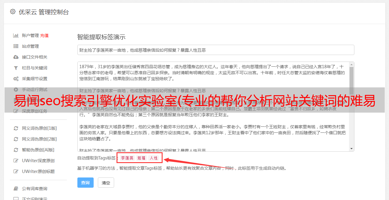 易闻seo搜索引擎优化实验室(专业的帮你分析网站关键词的难易程度)