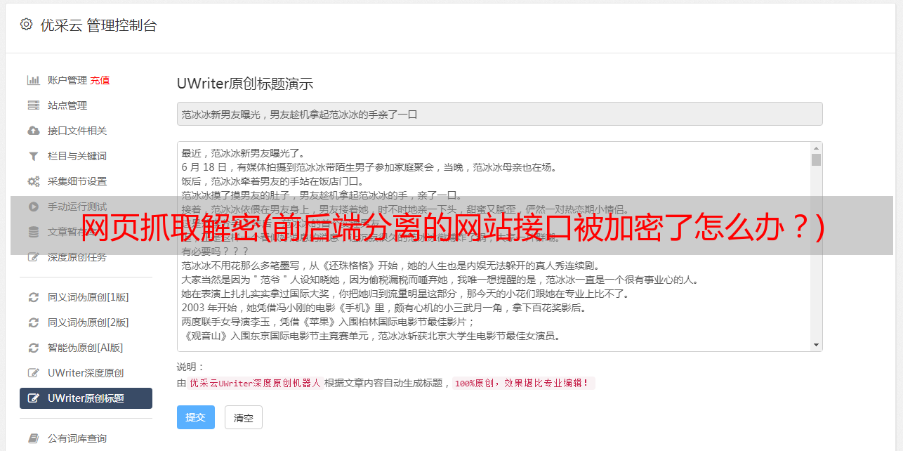优采云 发布时间: 2022-04-18 21:01网页抓取解密(前后端分离的网站接口被加密了怎么办?)