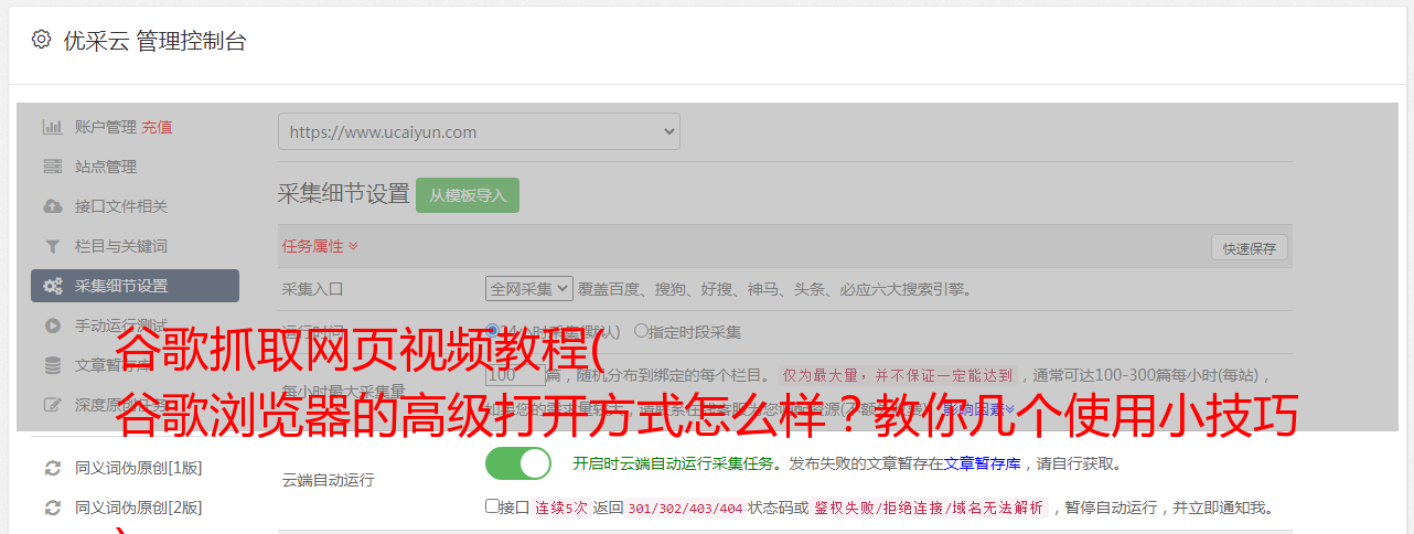 优采云 发布时间: 2022-04-18 21:19谷歌抓取网页视频教程(