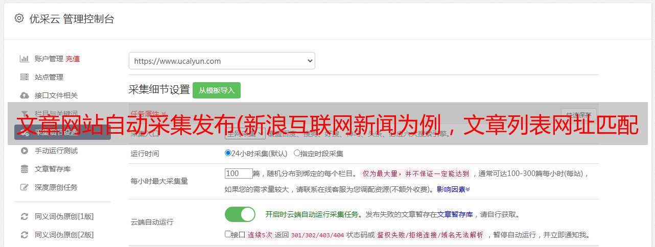 优采云 发布时间: 2022-04-18 23:06文章网站自动采集发布(新浪互联网新闻为例,文章列表网址匹配规则的设置)