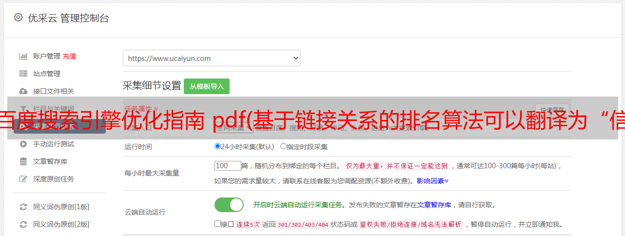优采云 发布时间: 2022-04-19 06:04百度搜索引擎优化指南 pdf(基于链接关系的排名算法可以翻译为“信任指数”TrustRank算法)