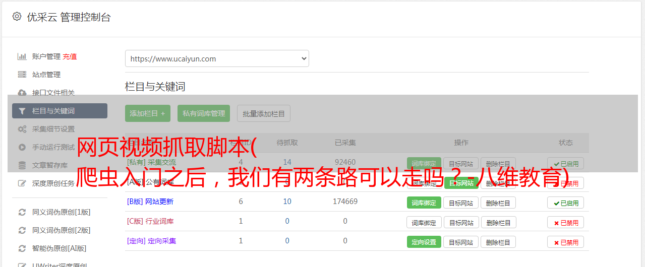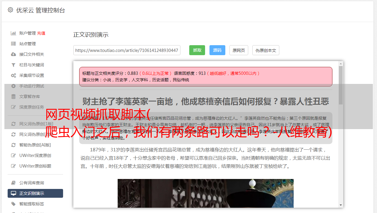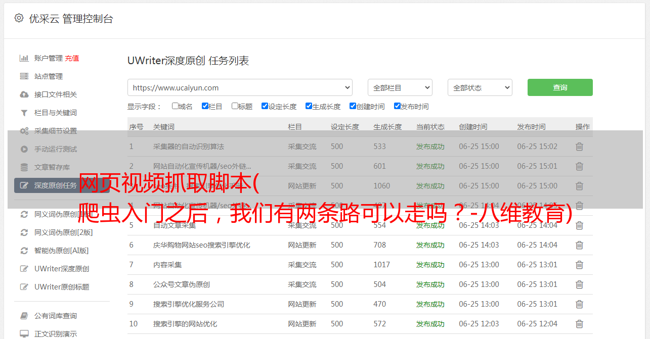 优采云 发布时间: 2022-04-19 08:13网页视频抓取脚本(