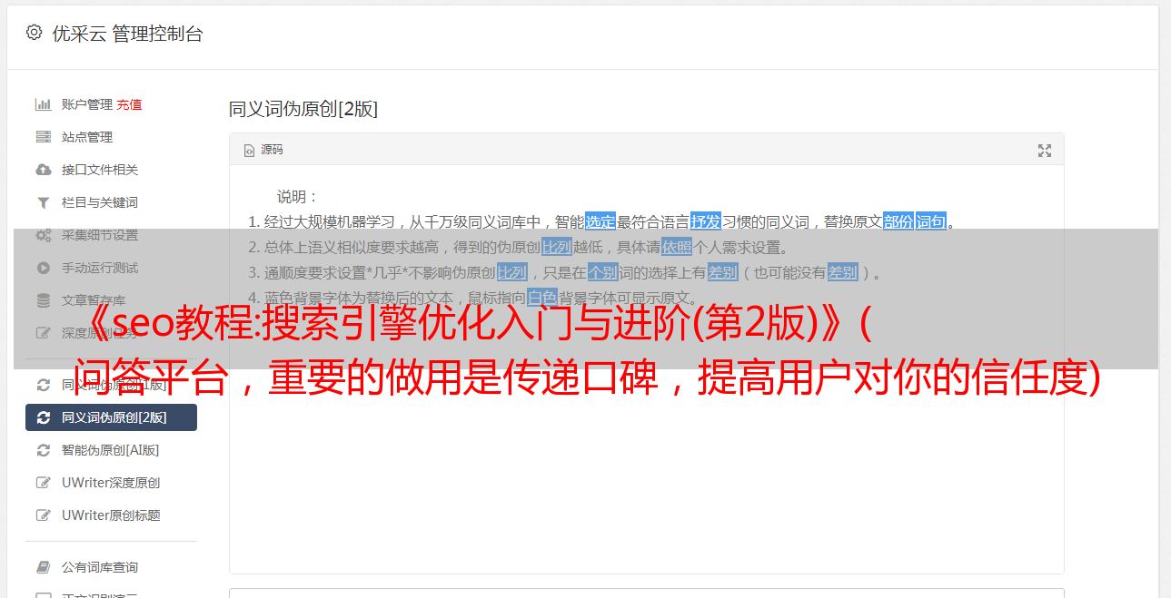 优采云 发布时间: 2022-04-19 16:00《seo教程:搜索引擎优化入门与进阶(第2版)》(