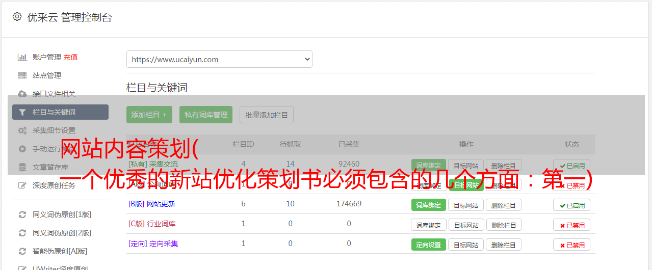 优采云 发布时间: 2022-04-19 18:24网站内容策划(