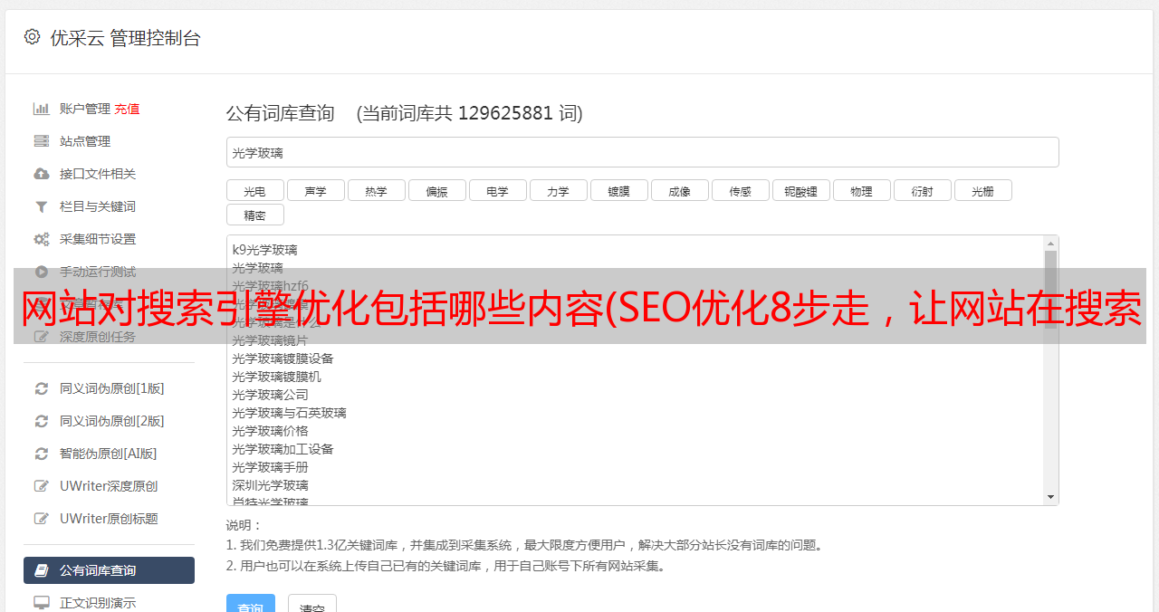 优采云 发布时间: 2022-04-20 13:48网站对搜索引擎优化包括哪些内容(SEO优化8步走,让网站在搜索引擎的排名提高