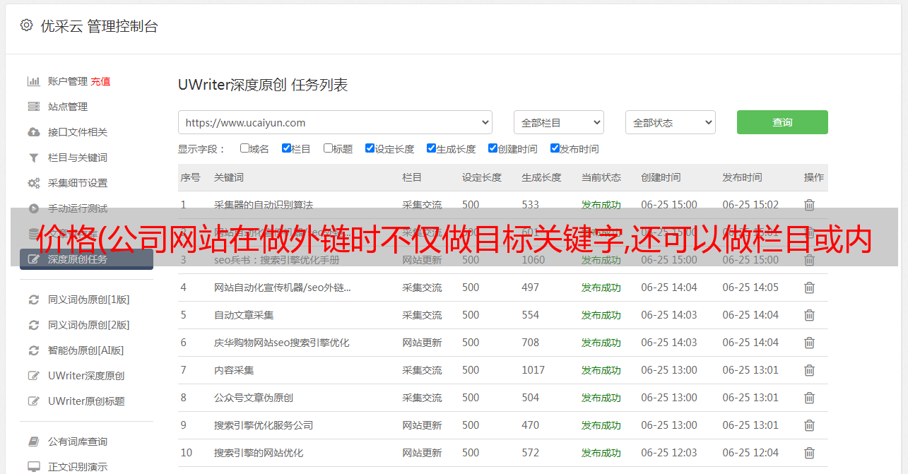 优采云 发布时间: 2022-04-20 18:25价格(公司网站在做外链时不仅做目标关键字,还可以做栏目或内容网站内链优化)