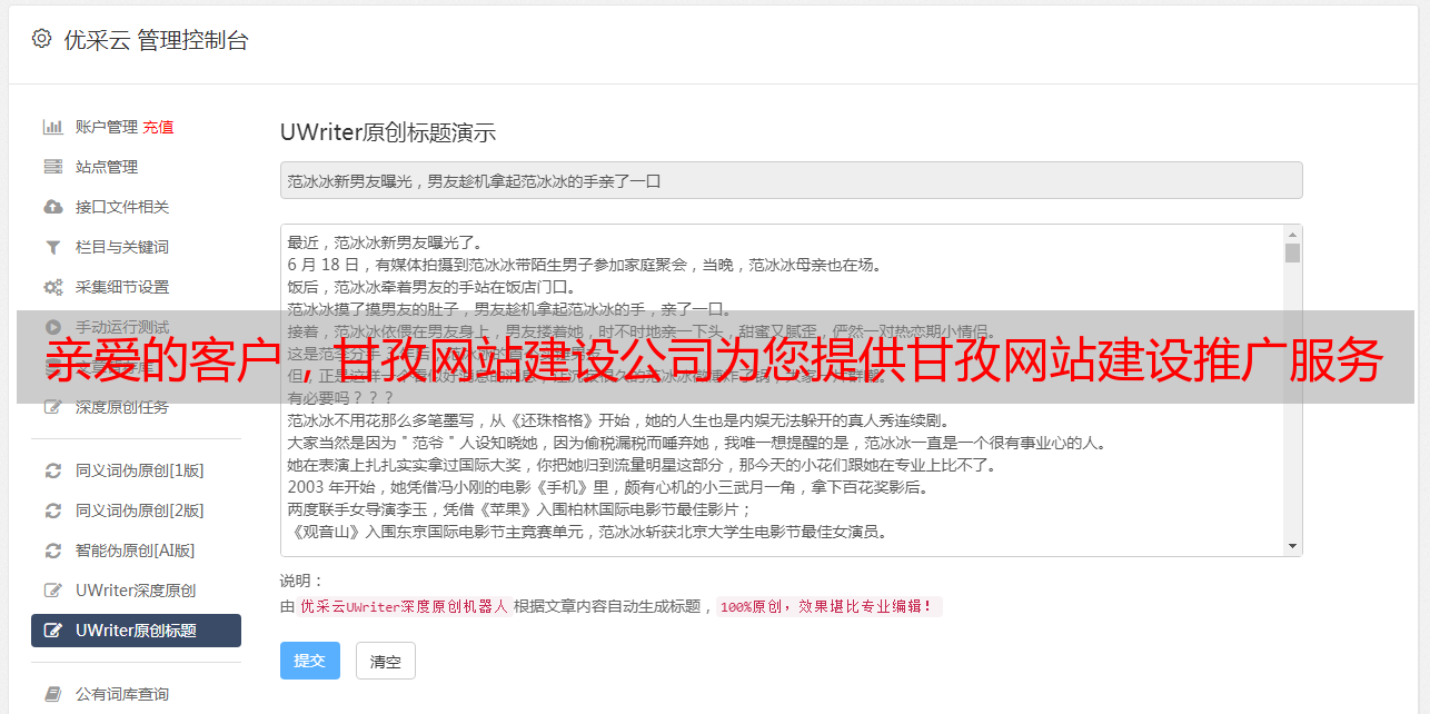 优采云 发布时间: 2022-04-29 10:13亲爱的客户,甘孜网站建设公司为您提供甘孜网站建设推广服务