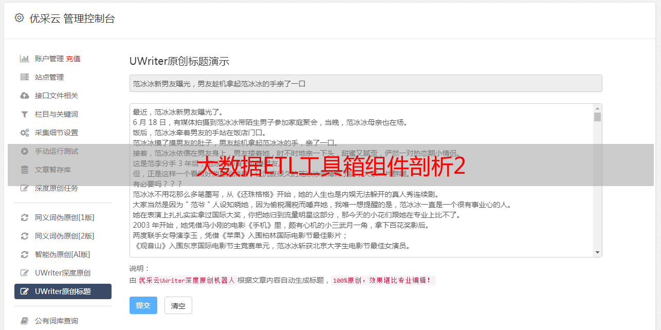 优采云 发布时间: 2022-04-29 20:11大数据ETL工具箱组件剖析2