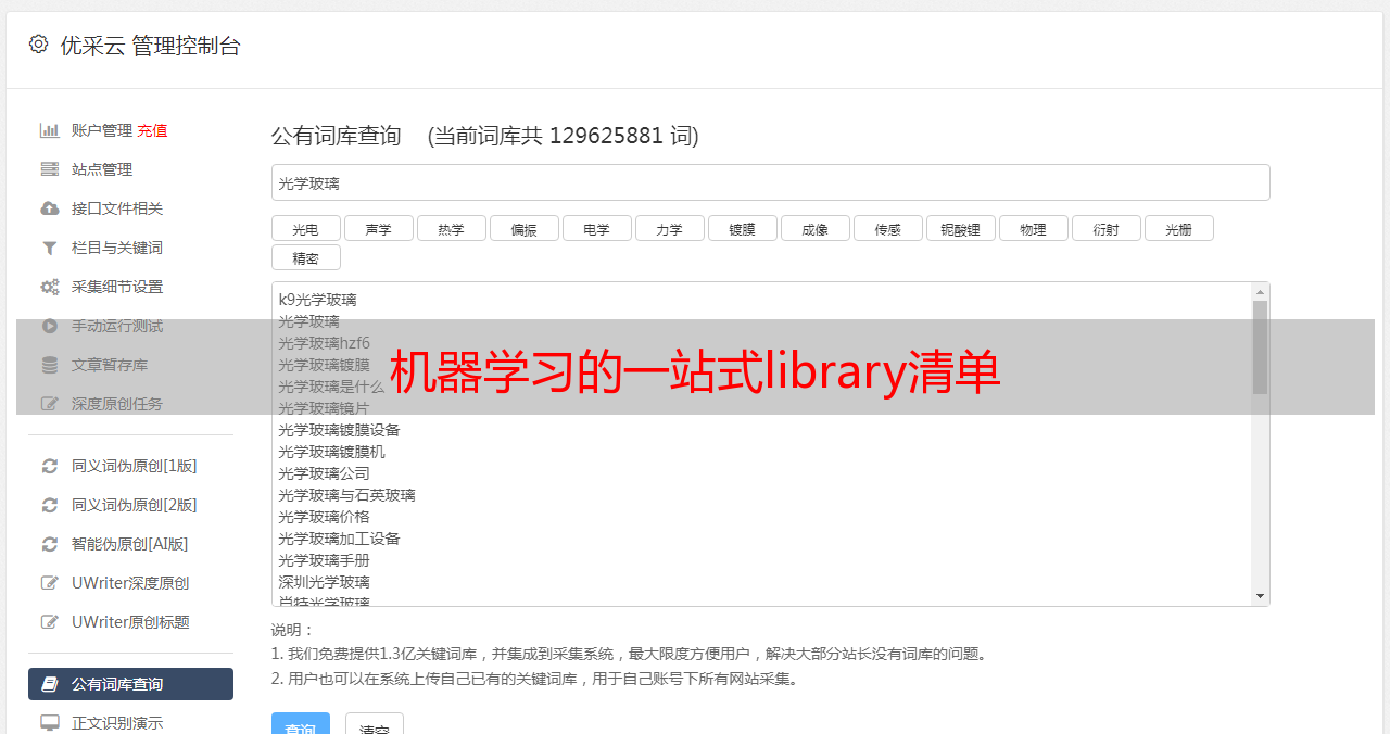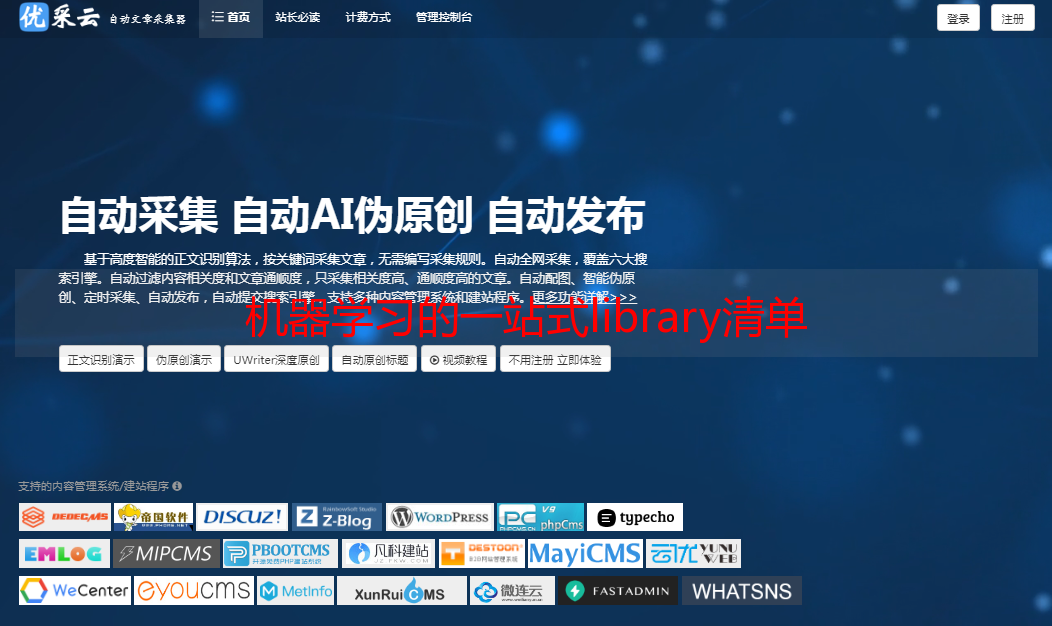 优采云 发布时间: 2022-04-29 20:21机器学习的一站式library清单