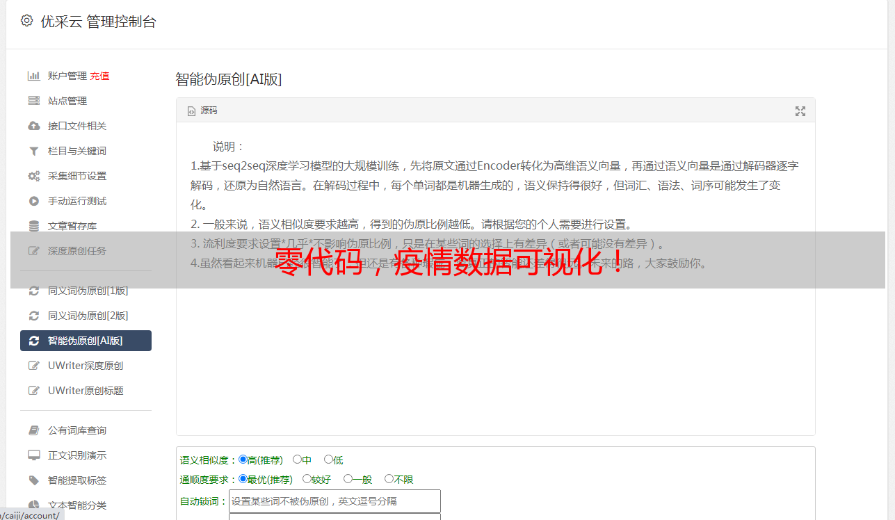 优采云 发布时间: 2022-04-30 00:27零代码,疫情数据可视化!