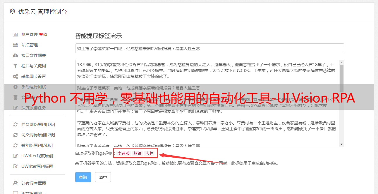 优采云 发布时间: 2022-04-30 12:06Python 不用学,零基础也能用的自动化工具-UI.Vision RPA