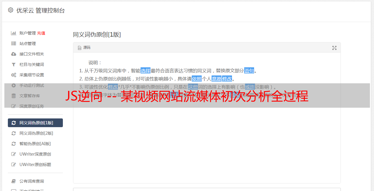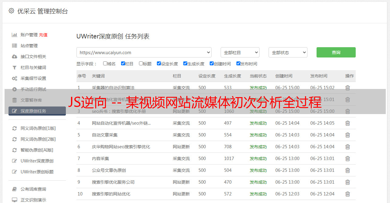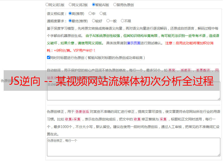 优采云 发布时间: 2022-04-30 23:15JS逆向 -- 某视频网站流媒体初次分析全过程