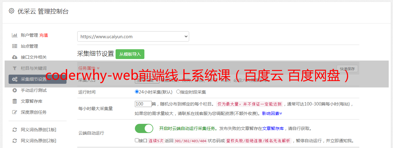 优采云 发布时间: 2022-05-01 03:11coderwhy-web前端线上系统课(百度云 百度网盘)