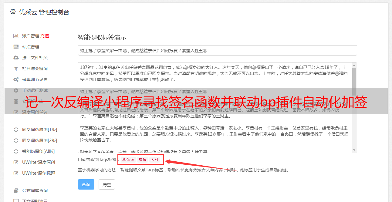 优采云 发布时间: 2022-05-02 04:25记一次反编译小程序寻找签名函数并联动bp插件自动化加签