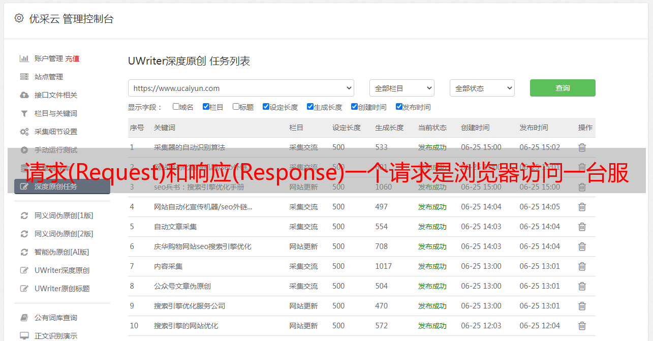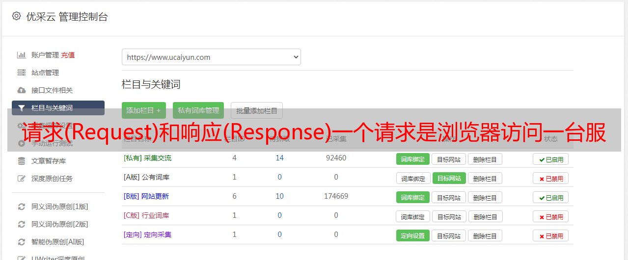 优采云 发布时间: 2021-05-18 20:16请求(Request)和响应(Response)一个请求是浏览器访问一台服务器