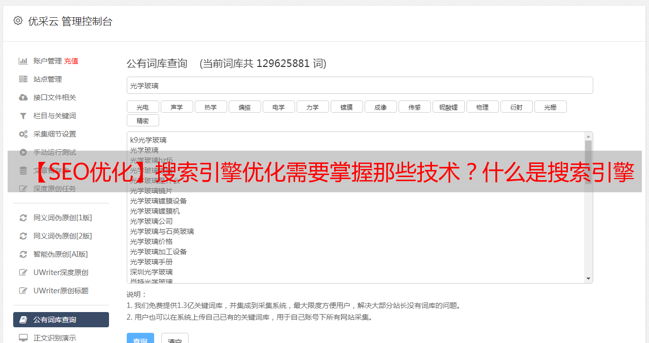 优采云 发布时间: 2022-05-04 02:44【SEO优化】搜索引擎优化需要掌握那些技术?什么是搜索引擎技术?