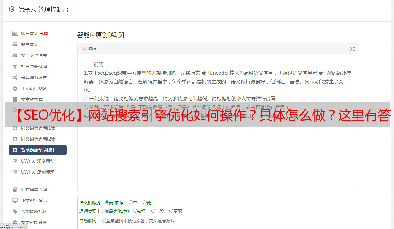 优采云 发布时间: 2022-05-04 10:00【SEO优化】网站搜索引擎优化如何操作?具体怎么做?这里有答案!