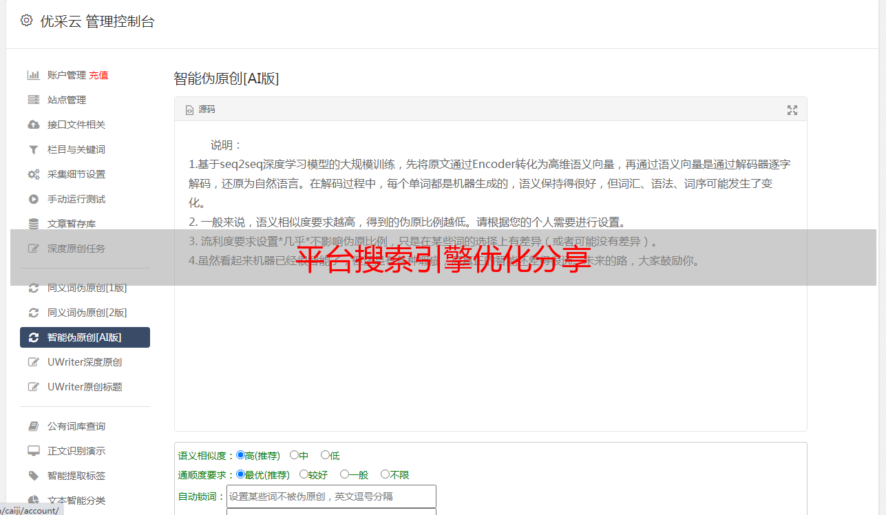 优采云 发布时间: 2022-05-04 10:01平台搜索引擎优化分享