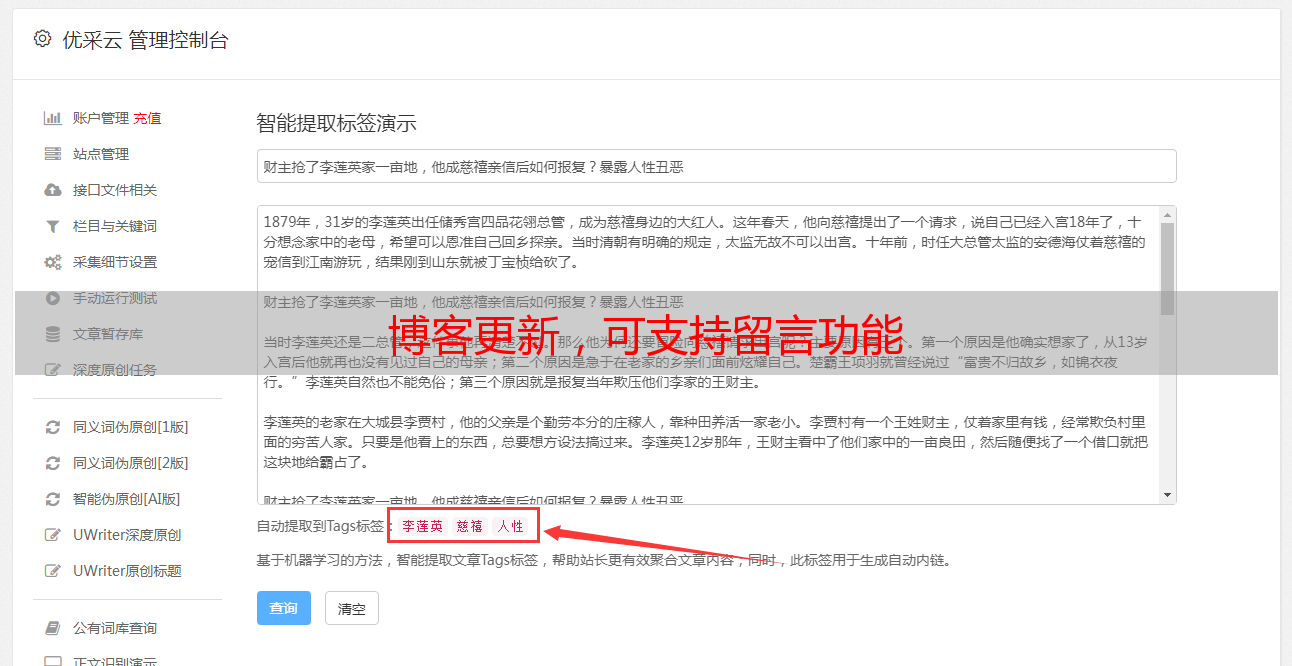 优采云 发布时间: 2022-05-05 06:01博客更新,可支持留言功能