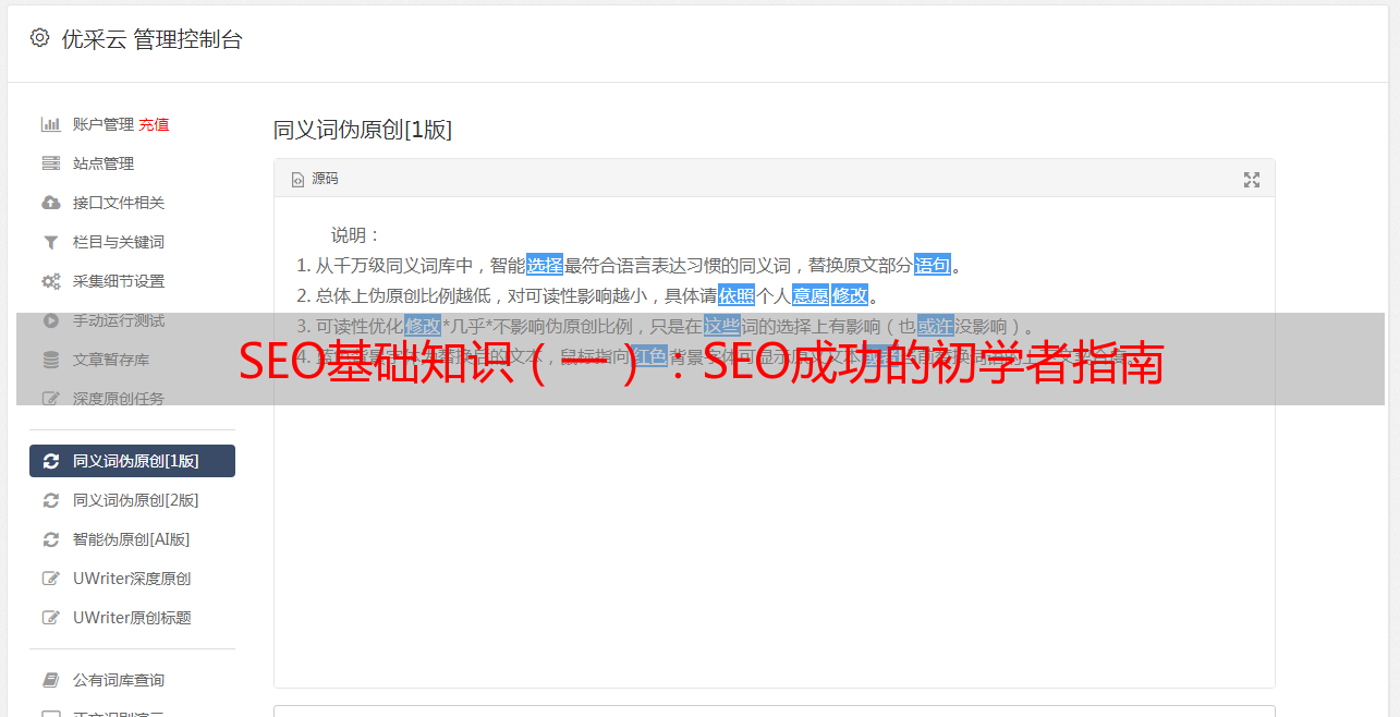 优采云 发布时间: 2022-05-05 08:04SEO基础知识(一):SEO成功的初学者指南