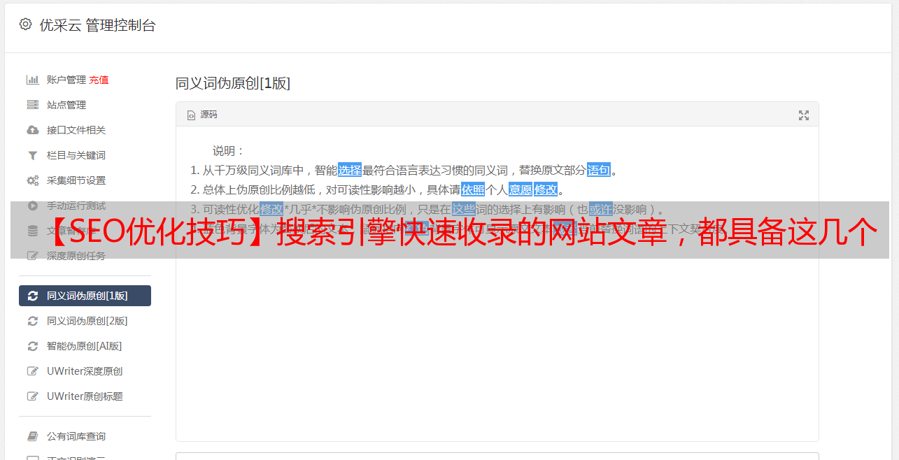 优采云 发布时间: 2022-05-05 08:07【SEO优化技巧】搜索引擎快速收录的网站文章,都具备这几个要点